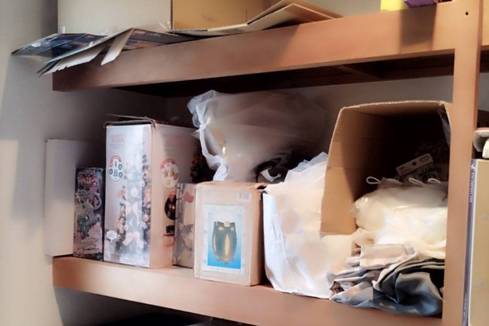 納戸に入ると、ストック類が目に飛び込みます。