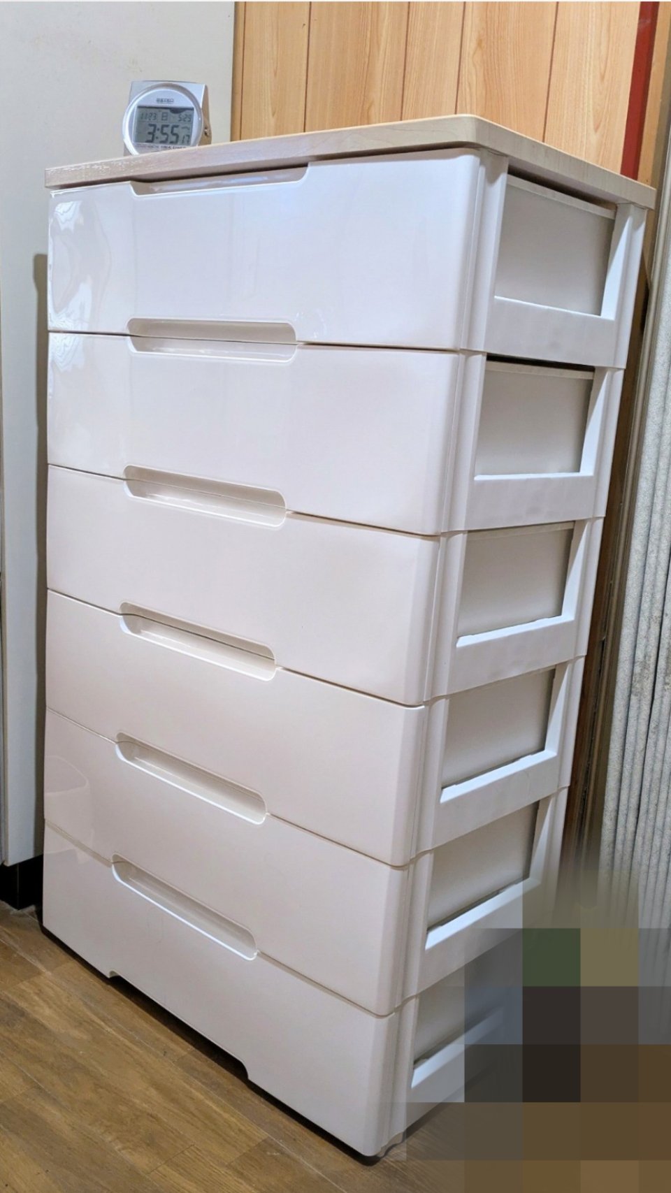 同時に、今は回転していないものが多数入っていることと 引出しが重いことが気になったので、この際 木製タンスを「ポリプロピレン製のレール付きチェスト」に交換されてみては?と、ご提案していました。