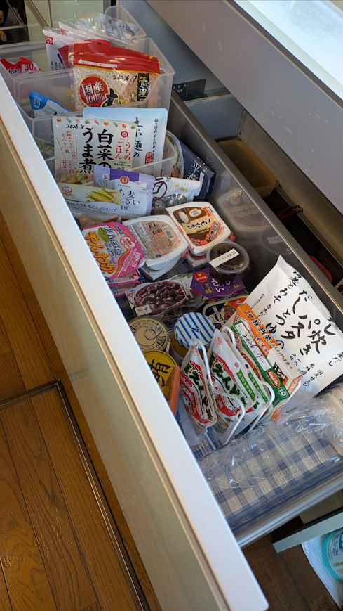 初めは想定されてなかった未開封の食品ストックを置かせていただきました。