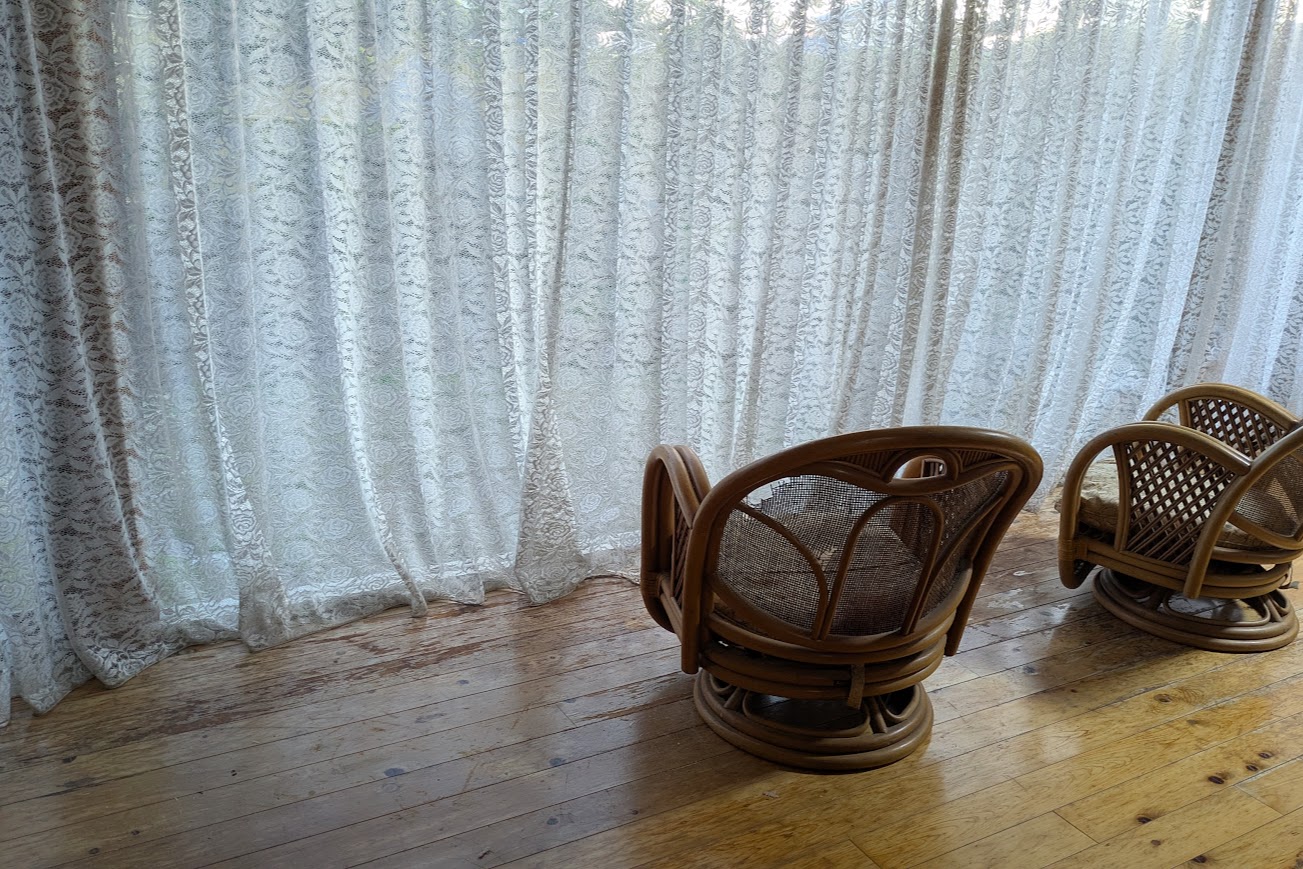 広い縁側は、籐の椅子だけになりました。ホッ