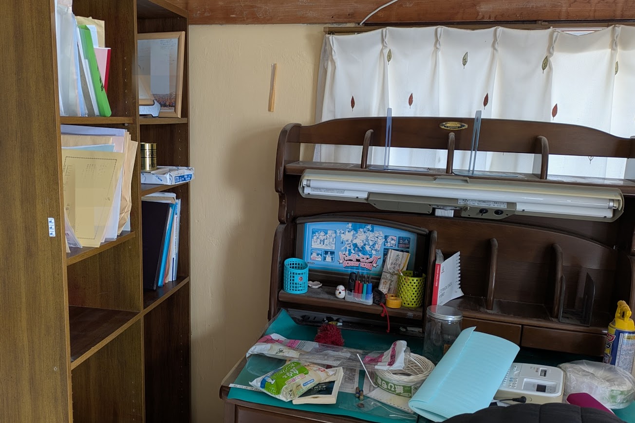 寝室には「ここにある方がいいもの」だけを残し、処分しないものは隣の書斎へ移動しています。
